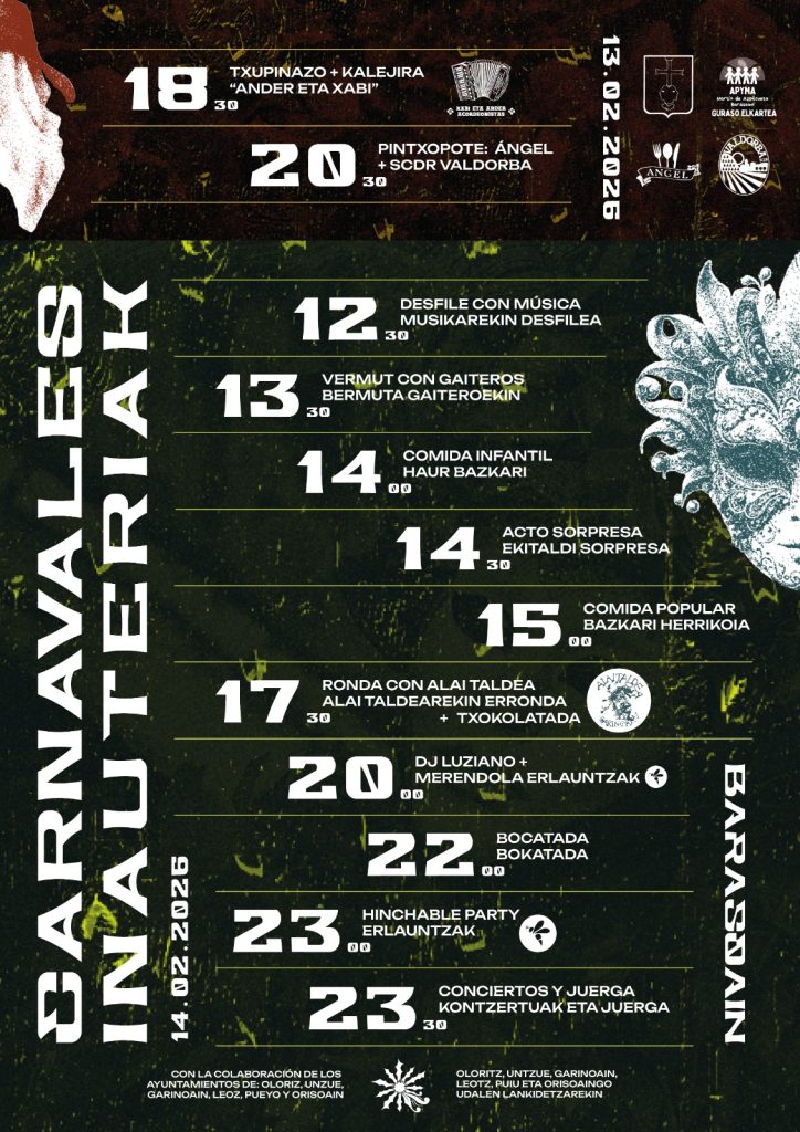 El fin de semana del 13 y 14 de febrero se realizarán los carnavales en la Valdorba. El viernes se organizará el carnaval rural y el sábado carnaval libre por cuadrillas. Aquí os dejamos el cartel del evento.